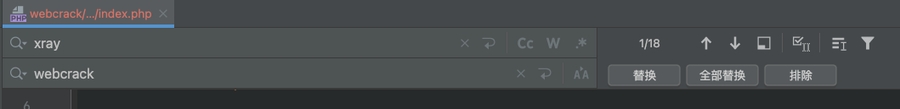 然后我们开始替换文件内容,直接将文件内容的xray改成webcrack,如下图所示